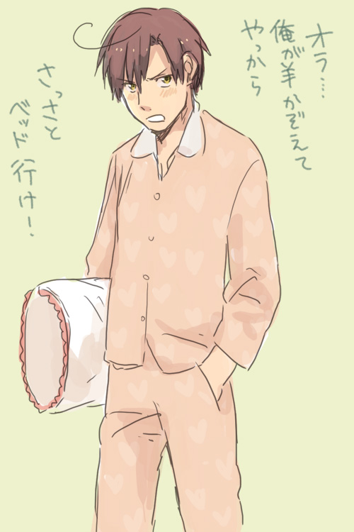 親分じゃない誰かの家にお泊りすることになってさすがにいきなり全裸で寝ることはできずに恥ずかしい柄のパジャマを借りることになったロマーノという設定です(真顔)